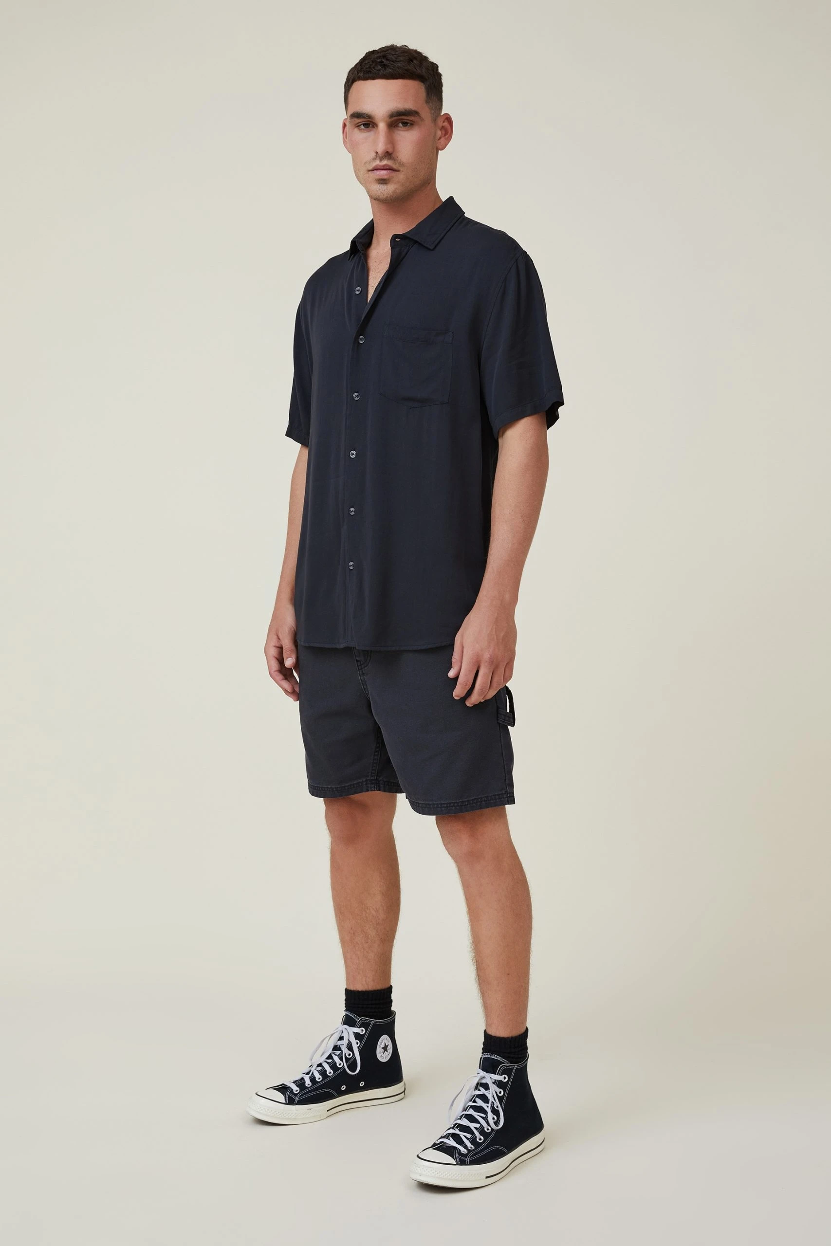 The cuban short sleeve shirt is a staple for your shirts collection. Features a loose fit, button front, chest pocket and short sleeves.
